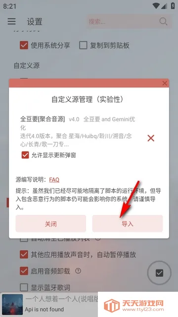 3、选择导入源,在特别说明中下载好音乐源后,导入到软件中。