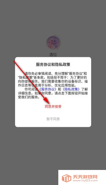 1、打开遇拉app,点击同意隐私政策