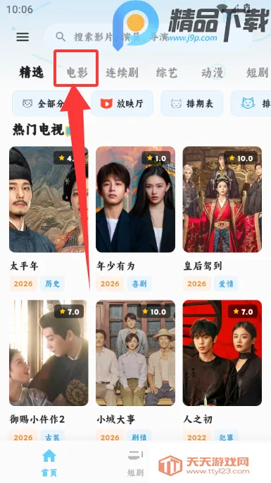 1、进入首页点击上方电影进入专区