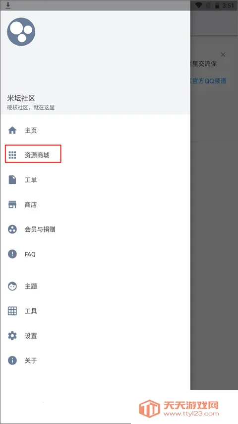 1、在下载资源包之前需要登录账号,然后再次点击左上角的三横图标并点击资源商城。