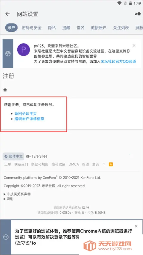 5、当你注册成功后查看到“您已成功注册账号提示”后,就表示已经注册好了。