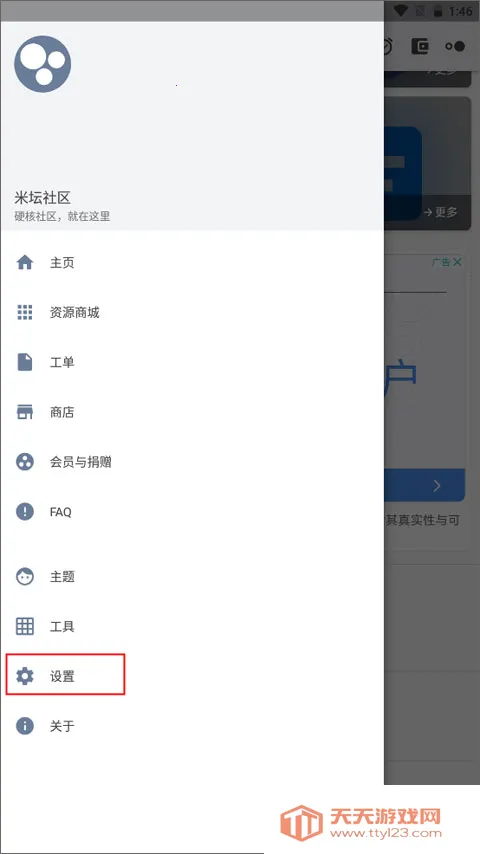 1、打开app,点击左上角的三横图标进入个人中心界面,找到设置按钮并点击它。