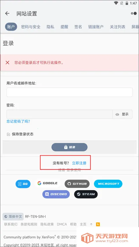 2、这时页面跳转到网站设置界面,作为新用户需要进行注册,点击下方的立即注册。