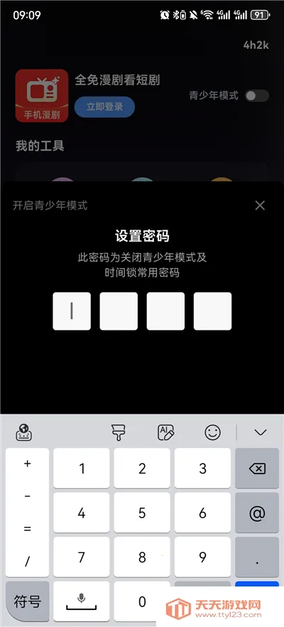 2、设置青少年模式密码;