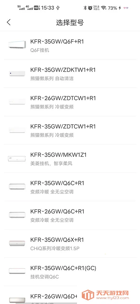 3、成功添加产品后,根据自己需要匹配的空调型号进行选择。