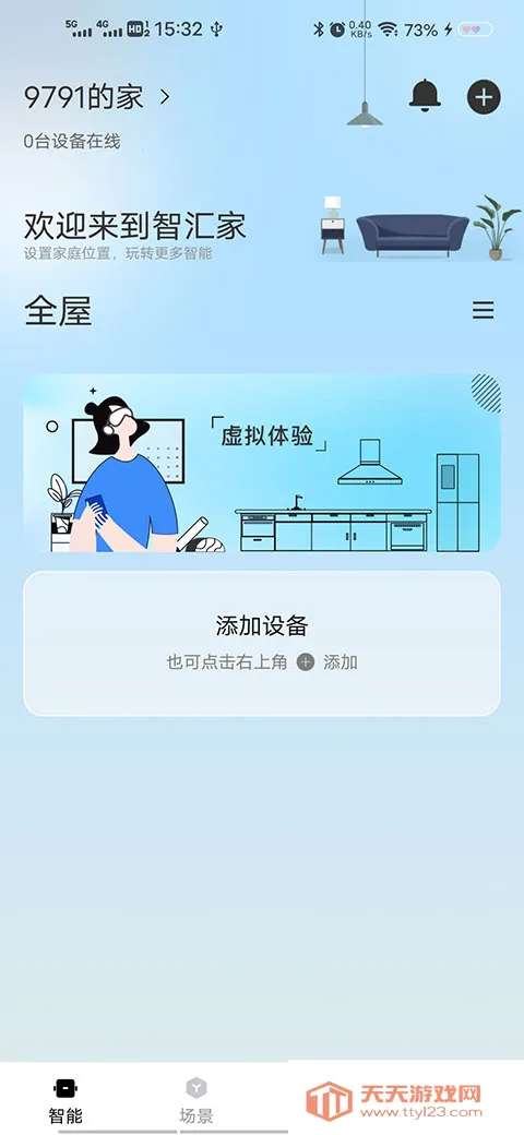 1、下载安装好app之后打开进入,在首页中选择添加设备,或者是点击右上角的加号进行添加。