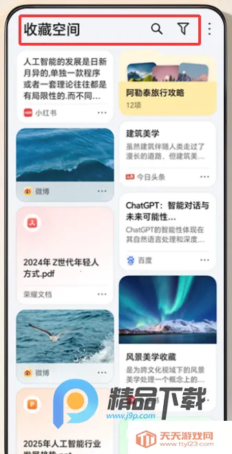 3、自动归类与同步:自动将用户主动留存的内容收入收藏空间并归类,还能多设备同步,方便随时查看。