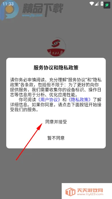 1、点击同意服务协议