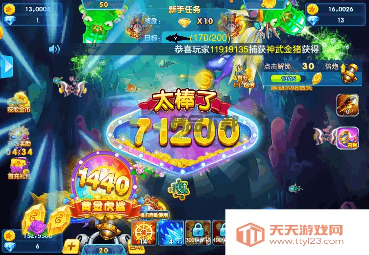2、竞技对战模式支持多人在线实时对战,比拼捕鱼数量或积分。可匹配陌生玩家,也能邀请好友,增添游戏竞技性。
