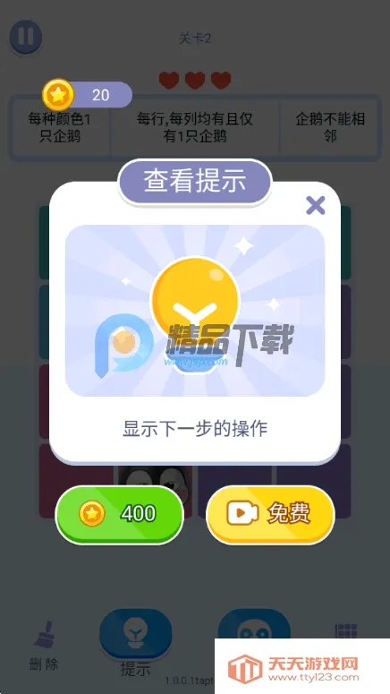 轻松闯万关2026最新版本是一款超有趣的放置企鹅数独游戏。它将数独与放置玩法融合,可爱企鹅相伴。无需复杂操作,双击放企鹅进格子,一个颜色一只,放四只通关。还能在休闲时锻炼思维,享受萌趣闯关之旅。