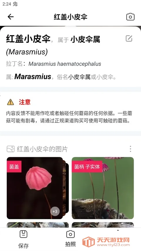 3、拍照完成后,会识别出蘑菇的详细信息。
