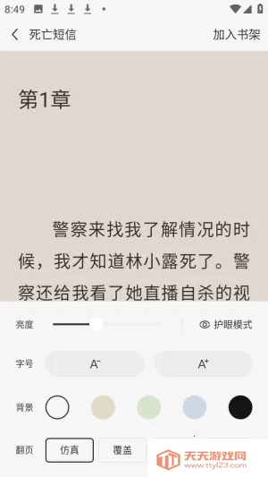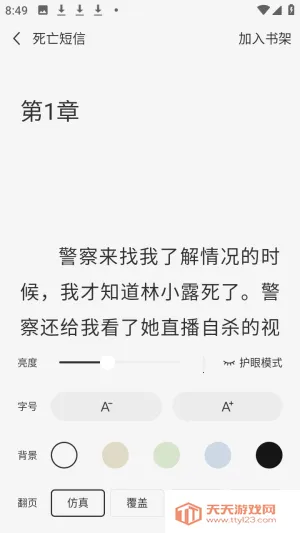 3、提供多种视觉优化选项,像夜间模式、翻页动画、字体缩放、背景颜色调节等,可根据环境光线自由调整。