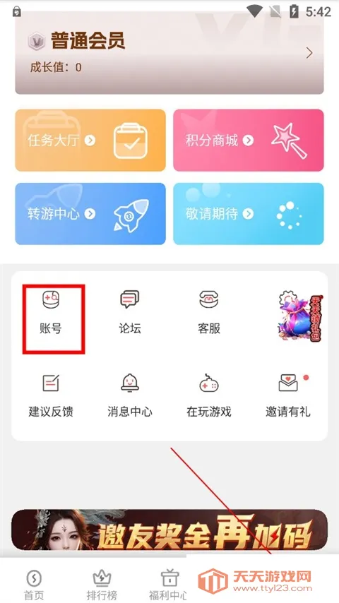 2、登录之后选择“我的”板块,进入“账号”功能当中;
