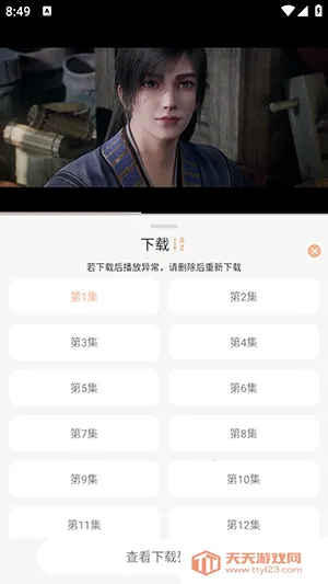 1、在播放界面点击下载选项,选择要下载的内容。