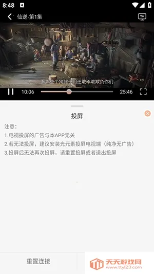4、点击右上角的TV图标可以搜索投屏设备进行投屏。