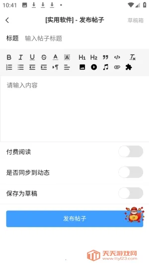 3、简单的操作方式:在软件首页能按热度浏览帖子,支持搜索感兴趣内容,发帖流程简便,点击加号选择文章类型并输入内容即可。