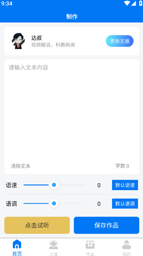2.输入想要配音的文字,点击“全部主播”选择合适的主播声音。