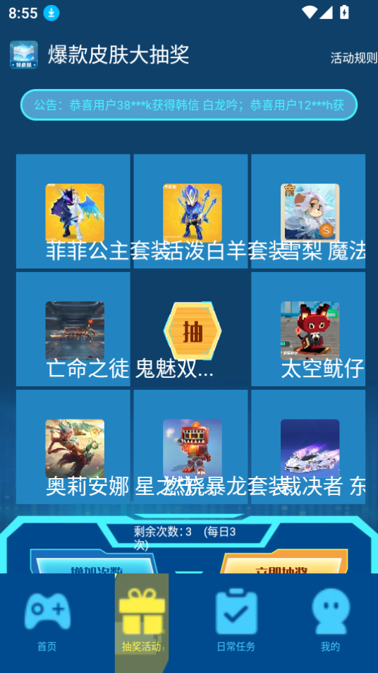 皮肤趣享多多免费版是一款全新推出的手机免费领皮肤的软件。这里有海量的任务等你来完成,轻松领取各种游戏的皮肤,时下比较火的游戏皮肤都可以在这里找到。需要就来下载使用吧!