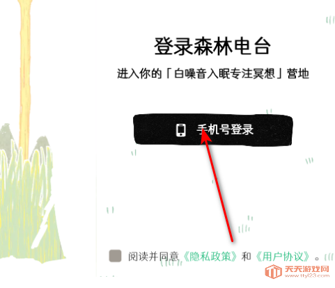天天游戏网下载进入森林电台软件,点击手机号登录