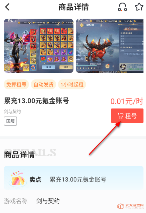 点击账号,可以查看详情,进行租号即可