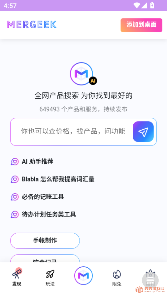 mergeek软件首发版是一款软件分享社区软件。这里包含了超多的优质项目和产品,你可以在这里找到想要的内容。快速的找到解决的方案,操作简单,还有强大的ai技术,搜索的准度也很高哦!