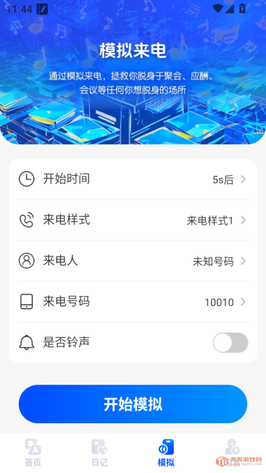 输入相关信息设置就可以开始模拟来电了