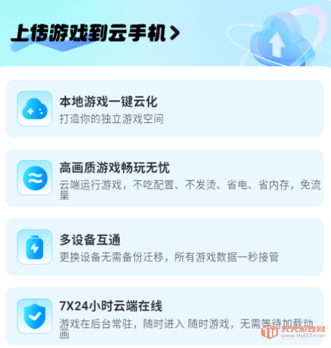 云游侠云游戏官方正版是一款功能强大的云游戏平台app。无需下载、更新游戏,直接点击就能开启游戏,节省了大量的时间和设备存储空间。同时,云端运行游戏,不吃配置、不发烫、省电、省内存,还能免流量,让玩家在各种设备上都能轻松畅玩。